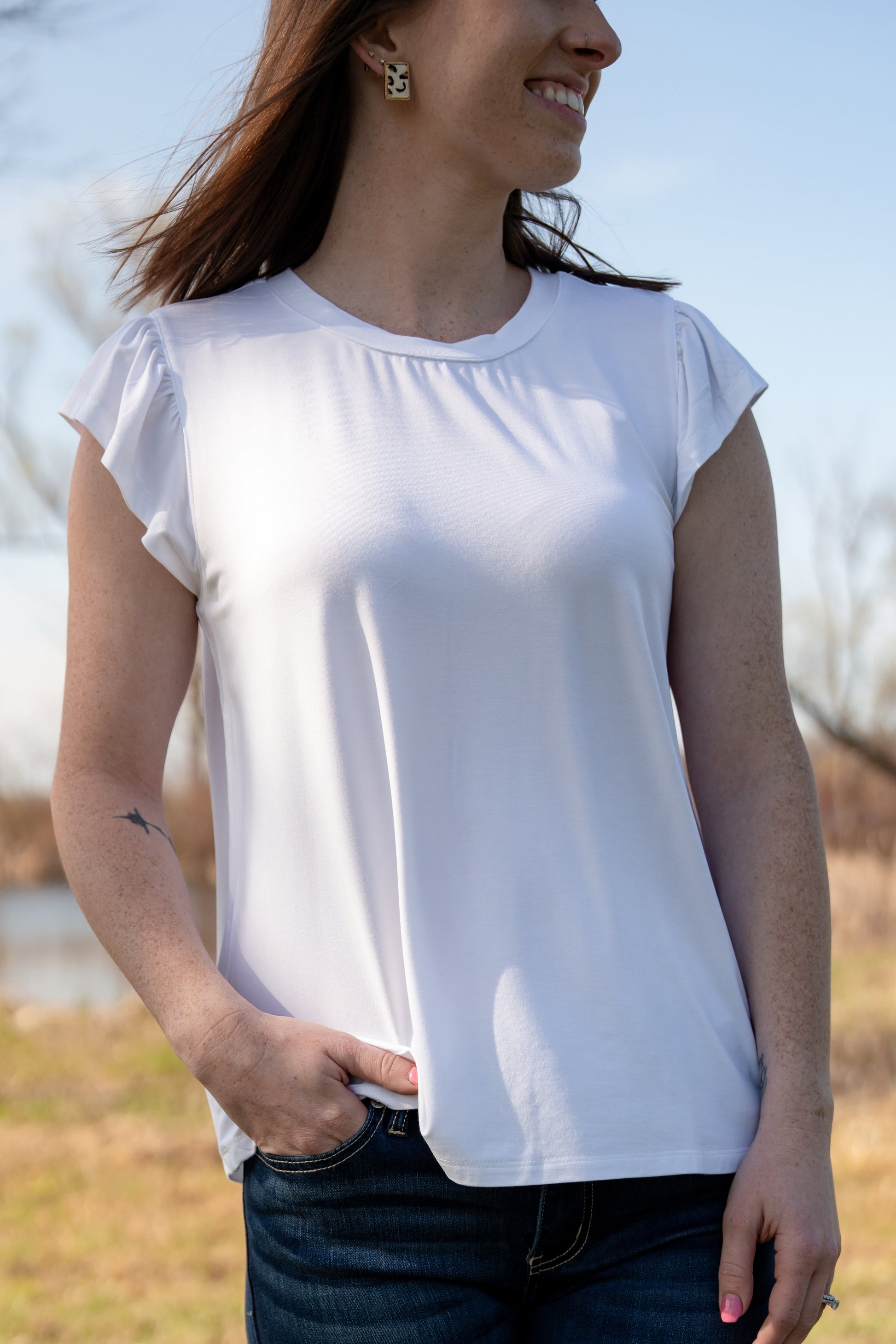 Staccato White Ruffle Sleeve Top